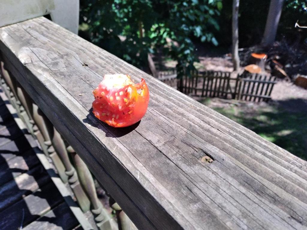 I may have an argument or two with the squirrels, though. I have seen half-eaten tomatoes littering the back deck. I’ll be willing to fight for the tomatoes. Unfortunately, they won’t touch the excess of jalapenos growing in the same space. But watching the acrobats of the mammalian world stretching out on flimsy branches to grab a crab apple, scurry to a more secure perch, and just sit there gnawing at the bitter fruit. To them it must be a welcome change to their diet of nuts.